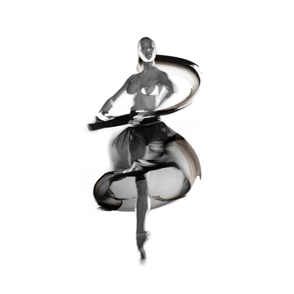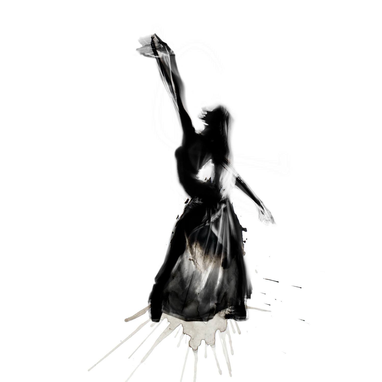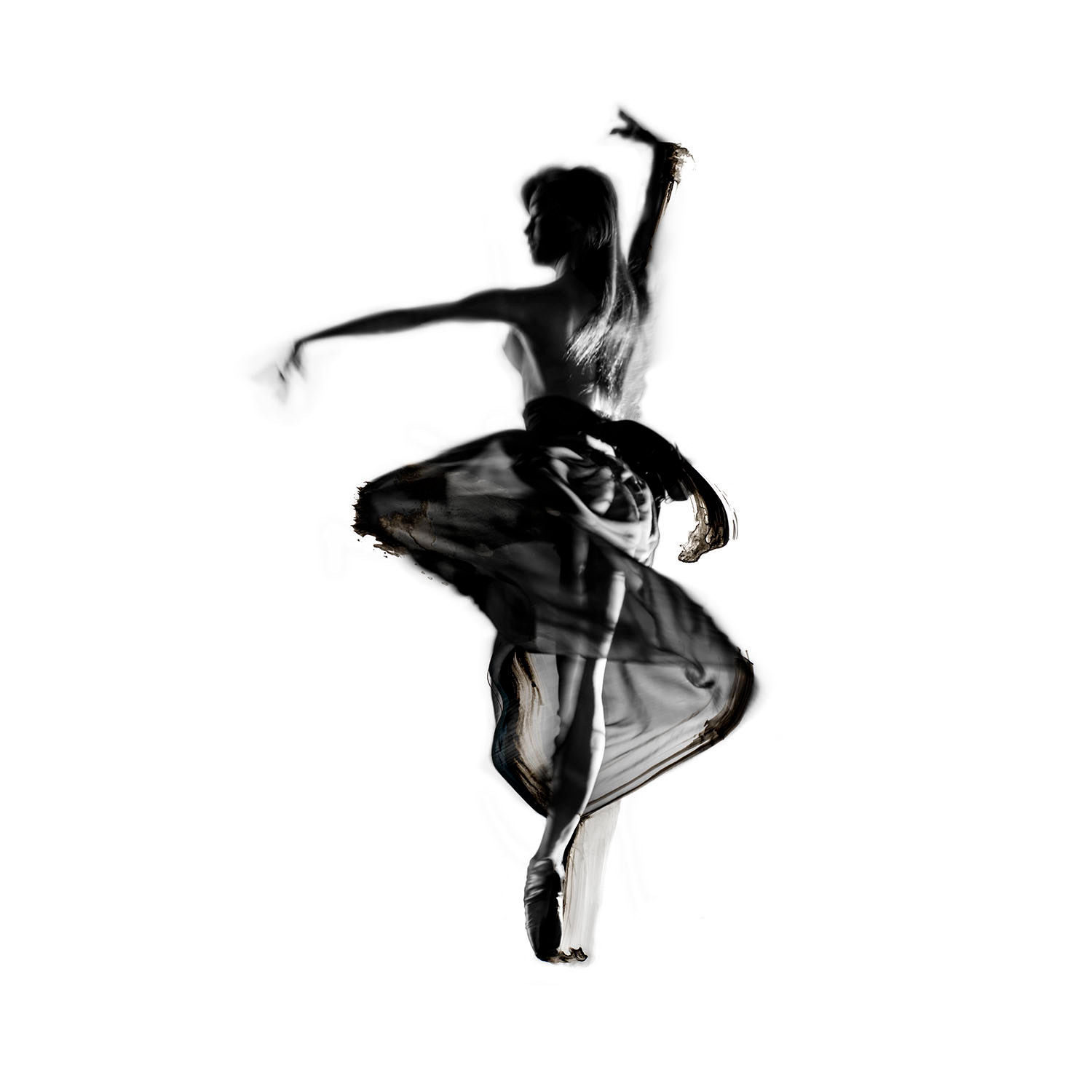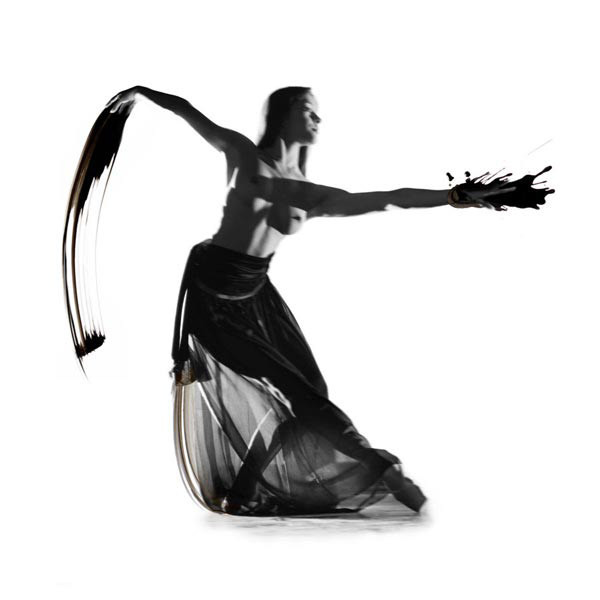 Dancer and paint strokes with indian ink.