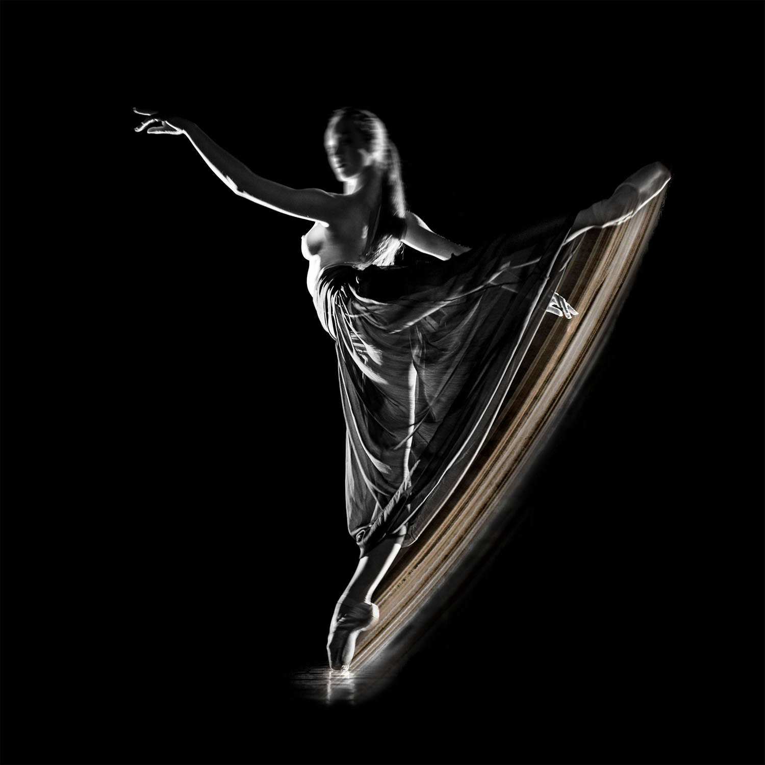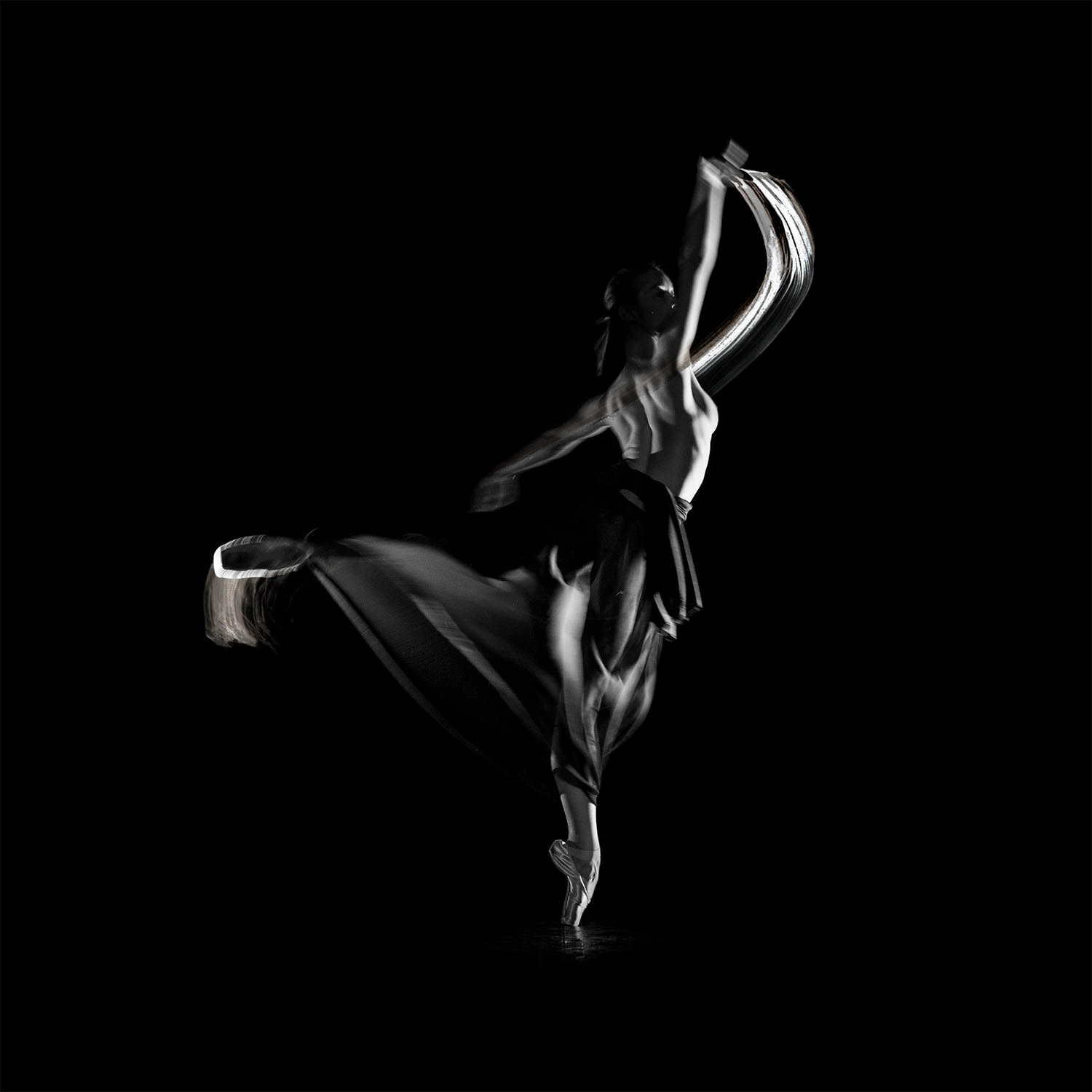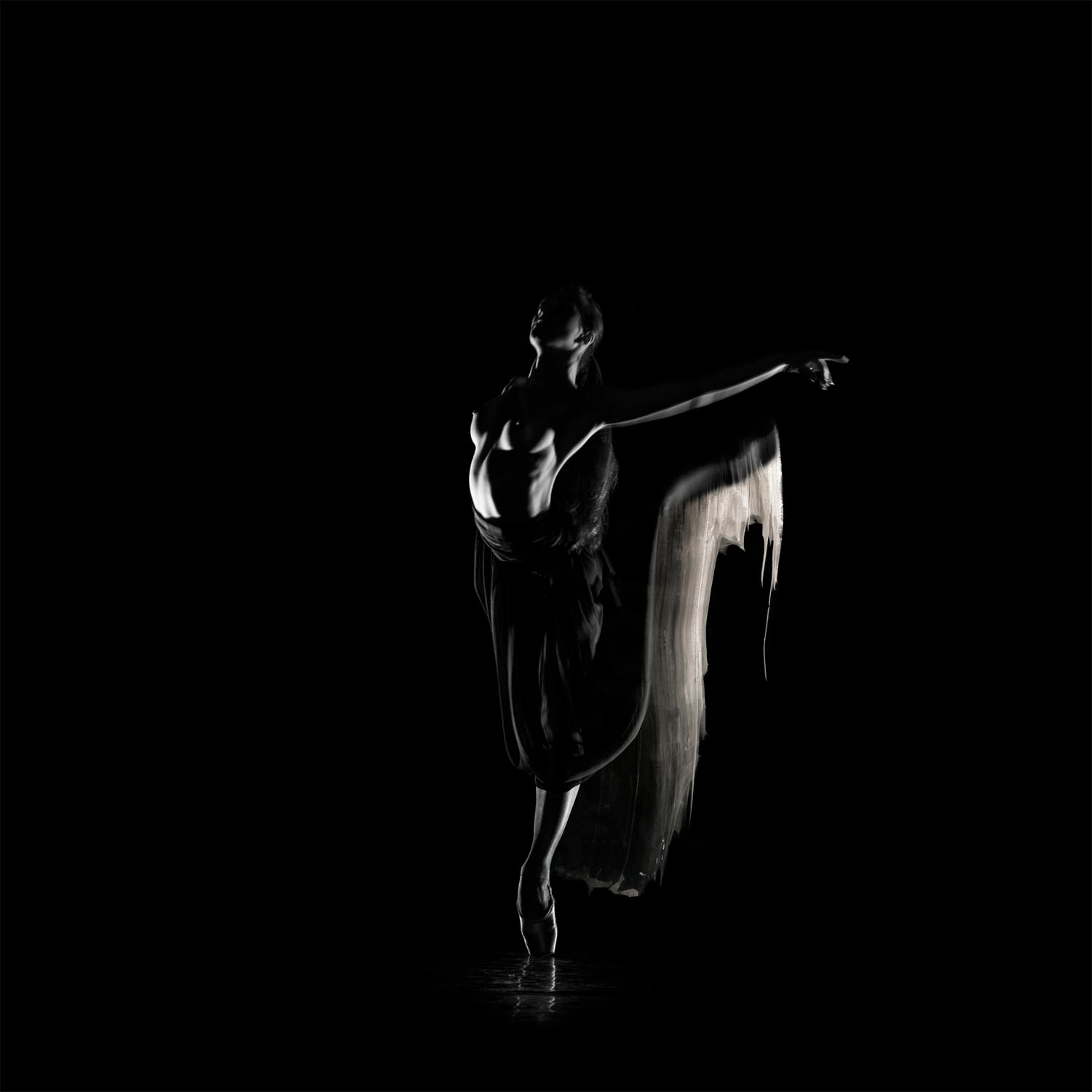 Dancer and paint strokes with indian ink.